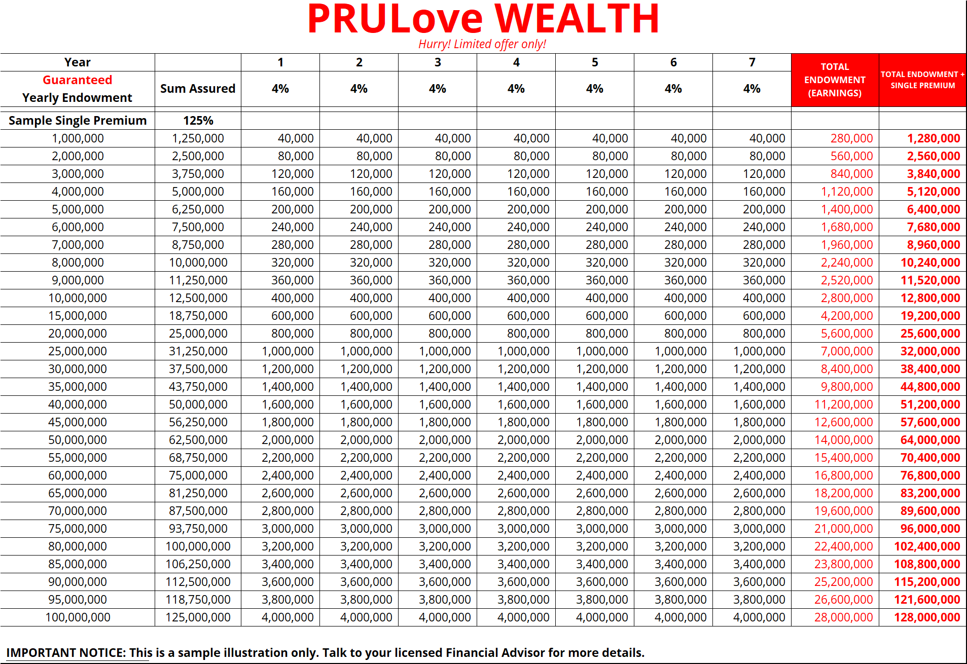 One-Time Premium Investment: Invest between ₱1,000,000 and ₱100,000,000 in a single payment.