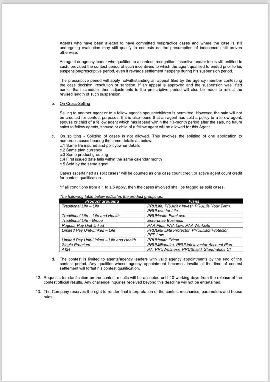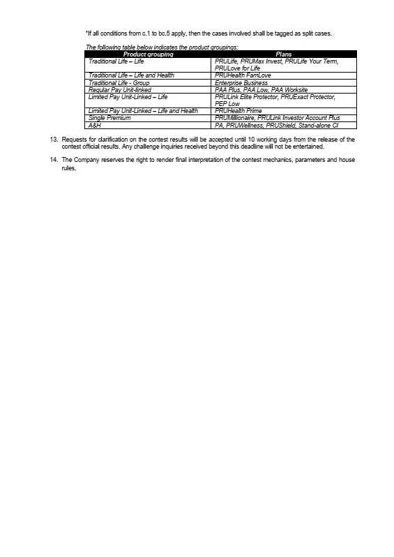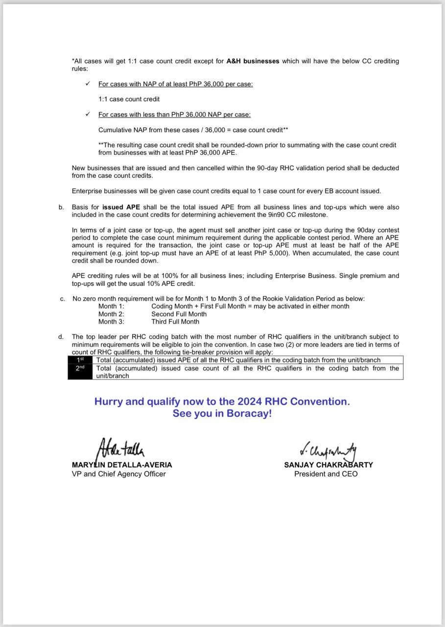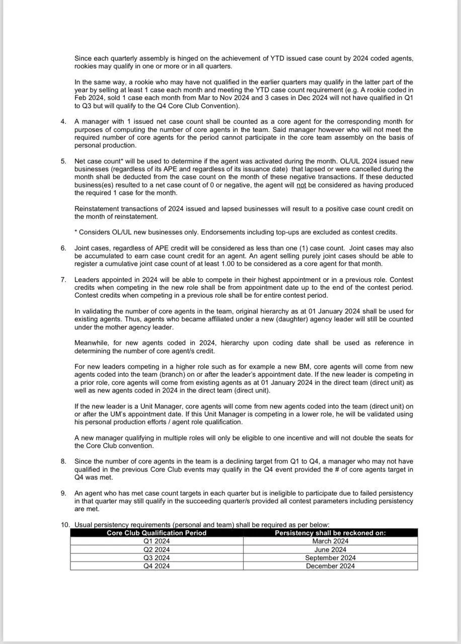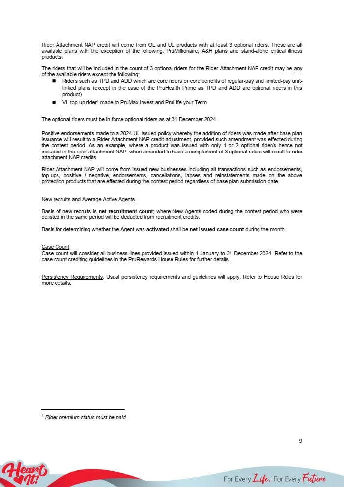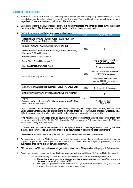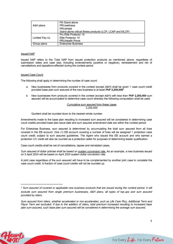 4.1. Ordinary Life (OL)/Unit Linked (UL) issued cases with at least PHP 36,000 APE per case will be given a 1:1 case count credit.