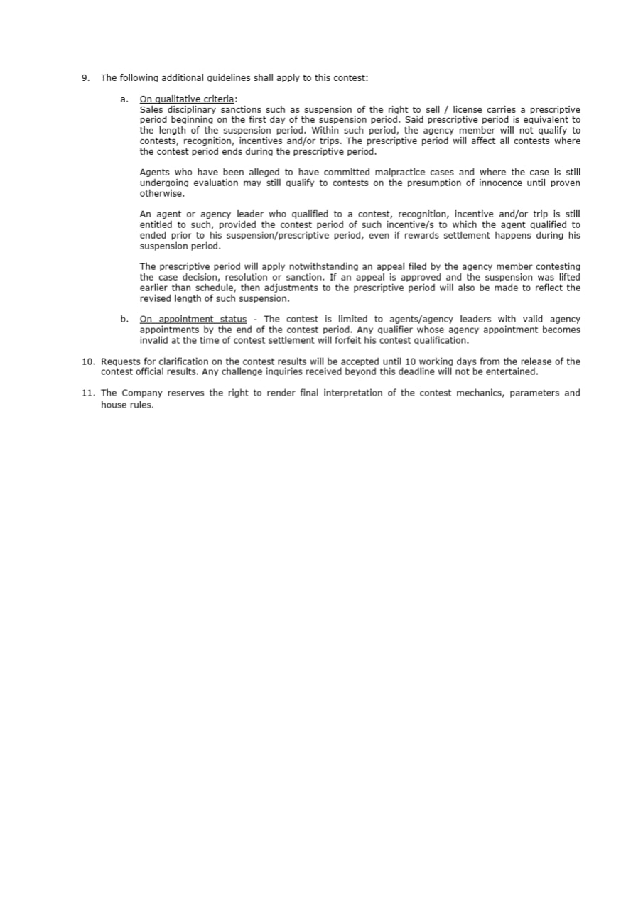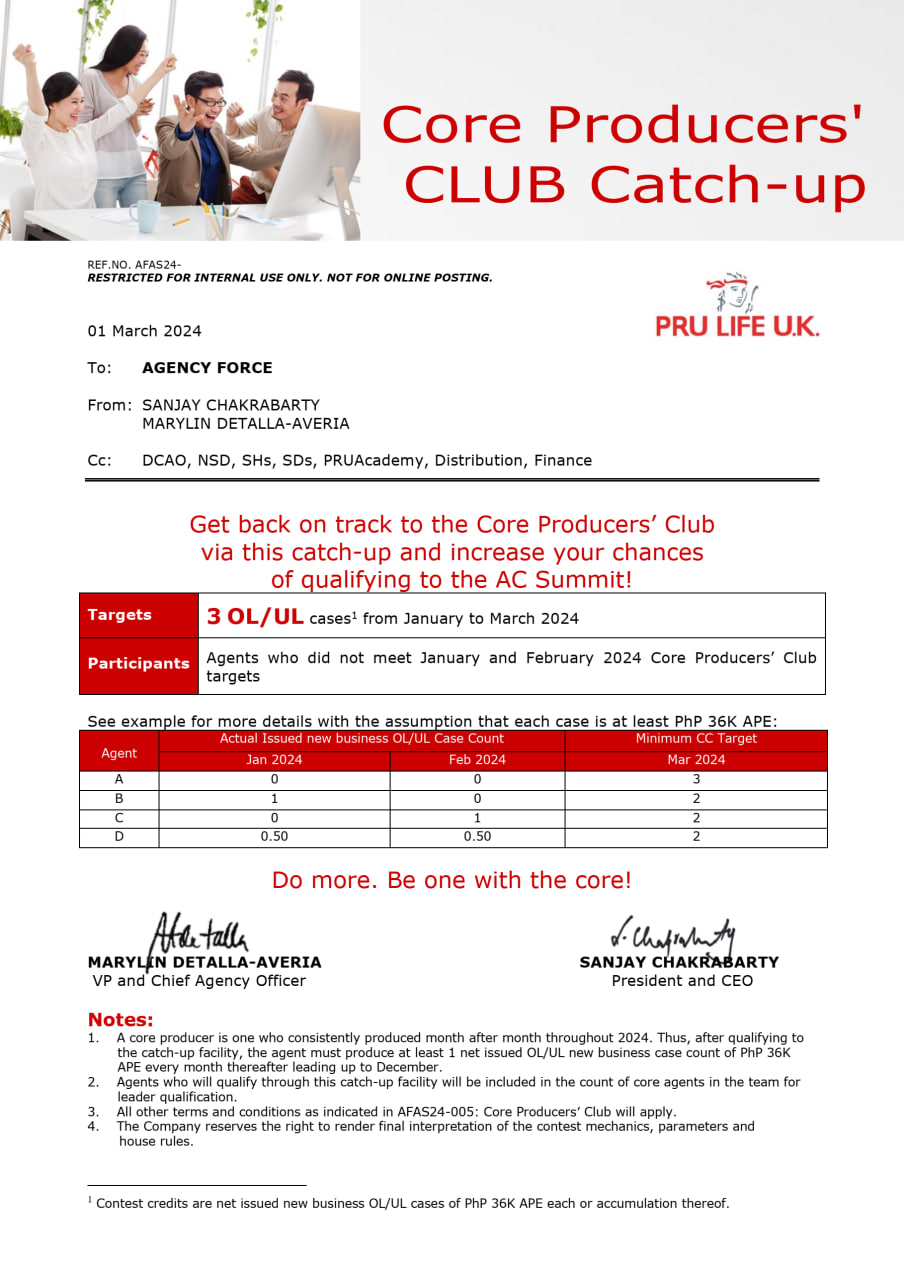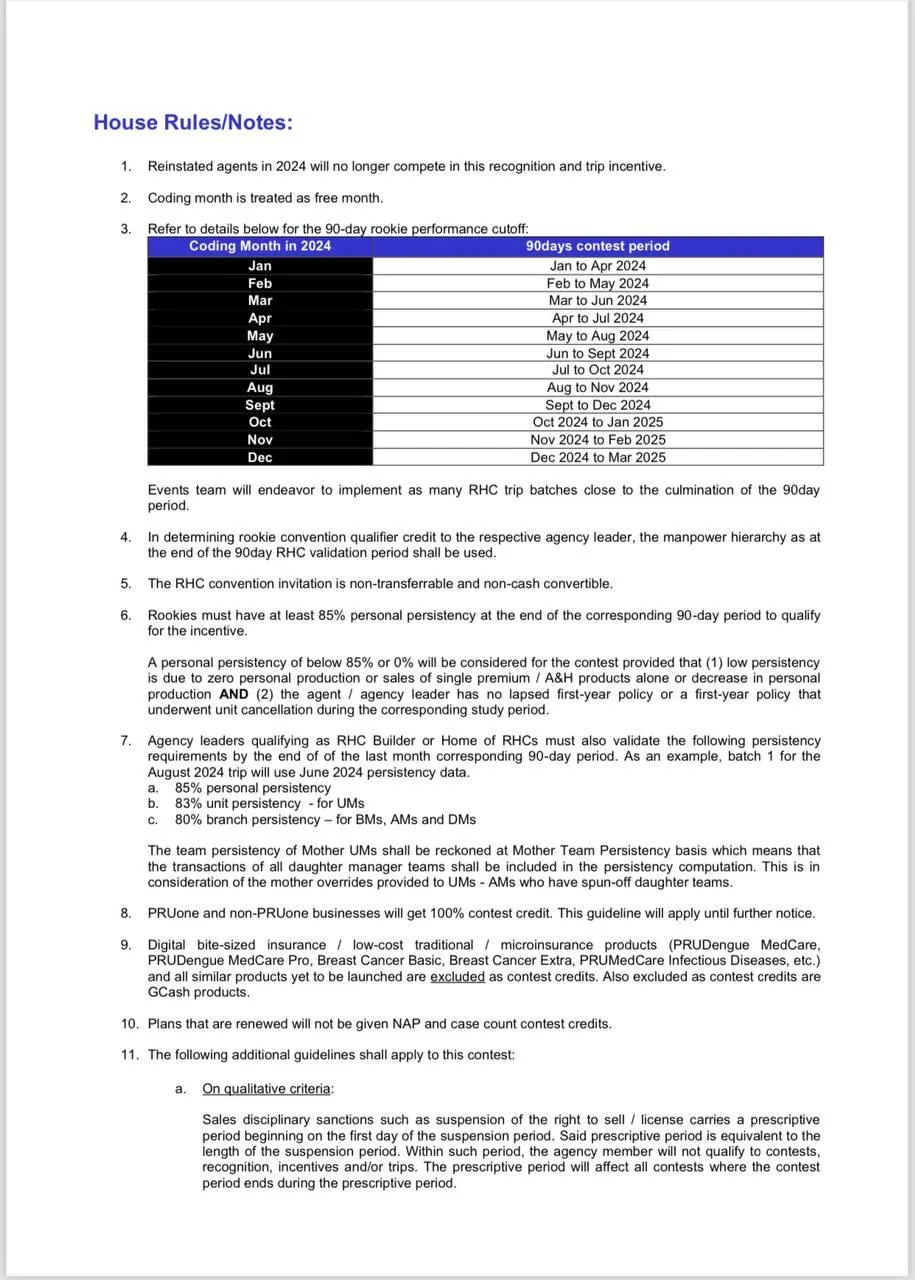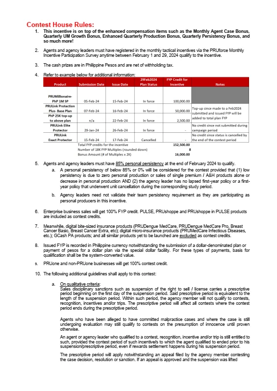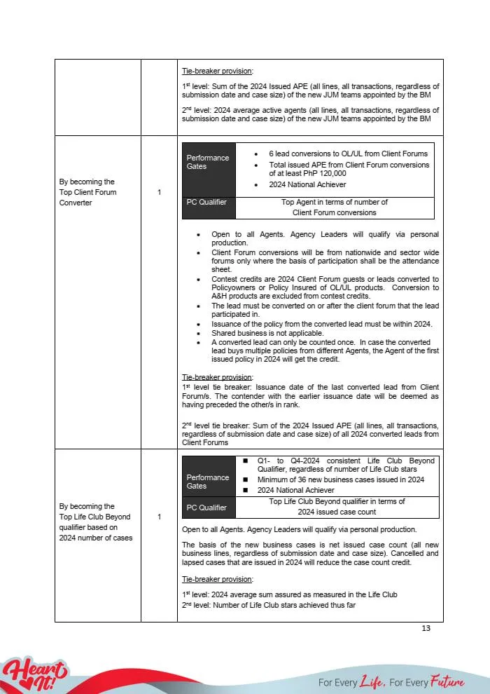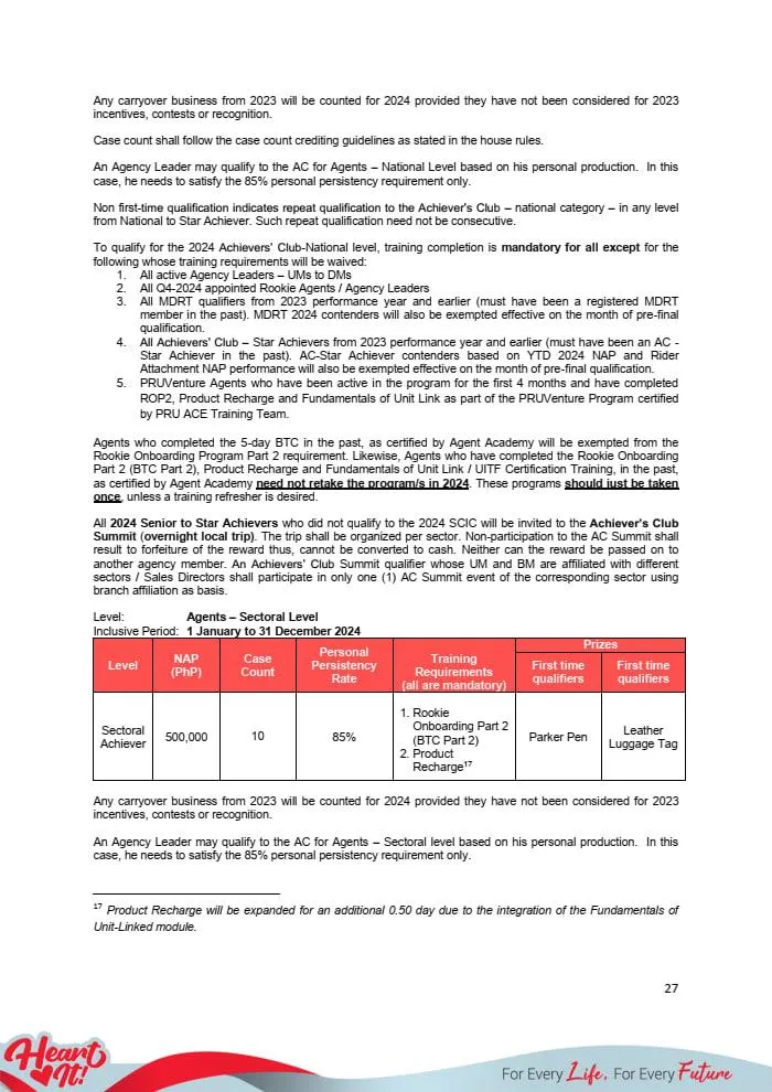 4.1. Ordinary Life (OL)/Unit Linked (UL) issued cases with at least PHP 36,000 APE per case will be given a 1:1 case count credit.