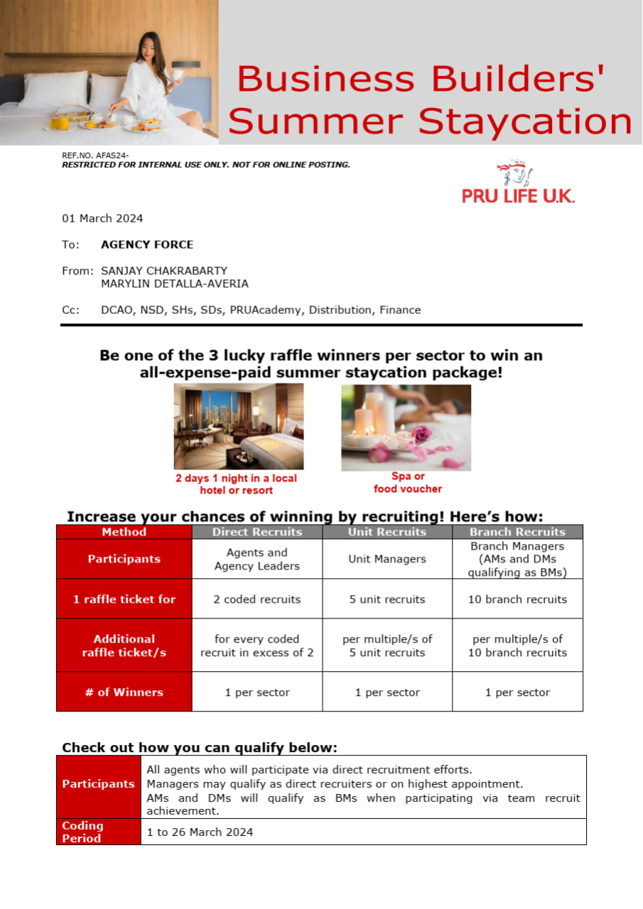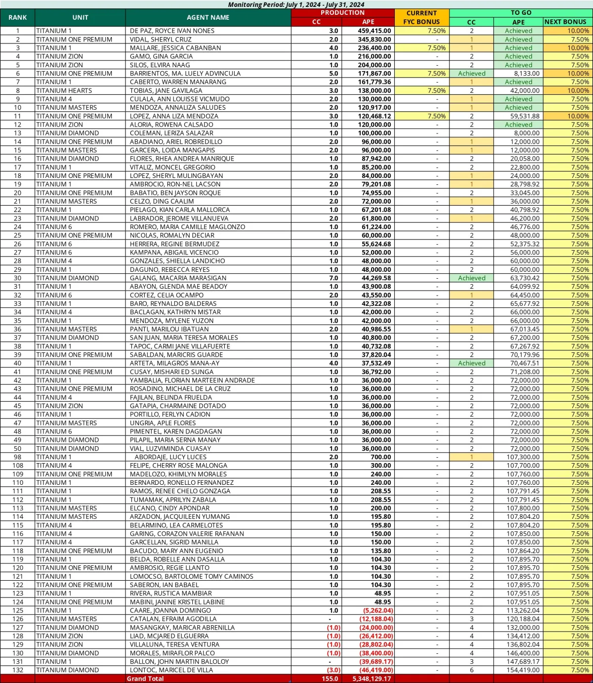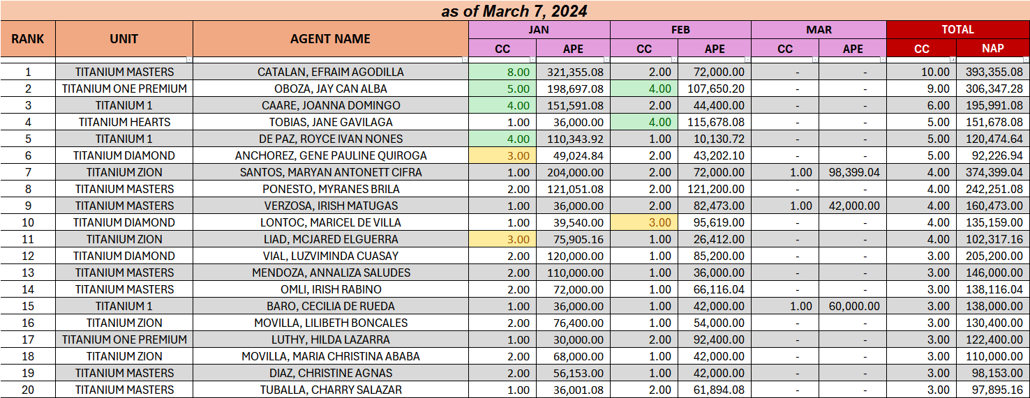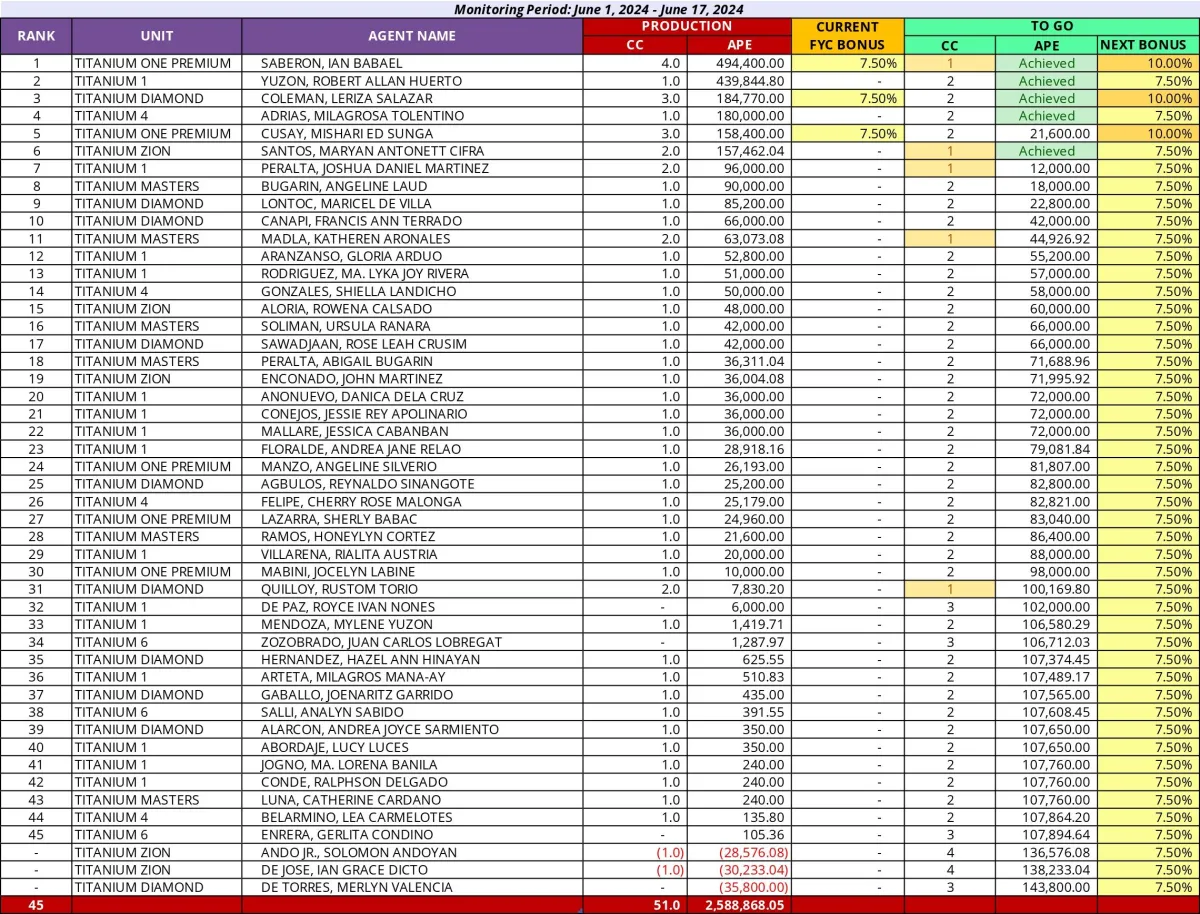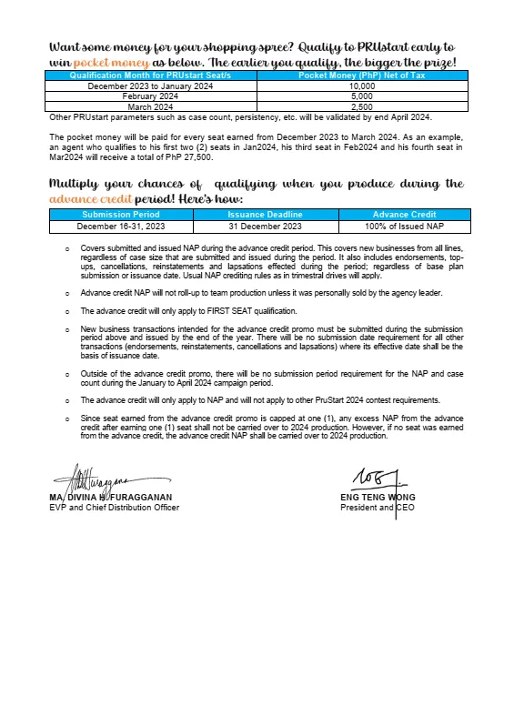 4.1. Ordinary Life (OL)/Unit Linked (UL) issued cases with at least PHP 36,000 APE per case will be given a 1:1 case count credit.